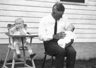 Edwin was now a grieving widower with two young sons. This picture of the three of them sitting outdoors, Edwin